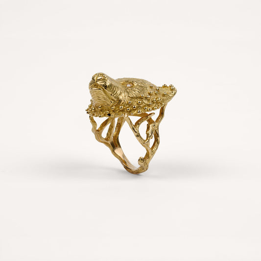 Bague Prodigieux bestiaire ours gaspard anneau poétique, diamants et or jaune recyclé 18k 750/1000