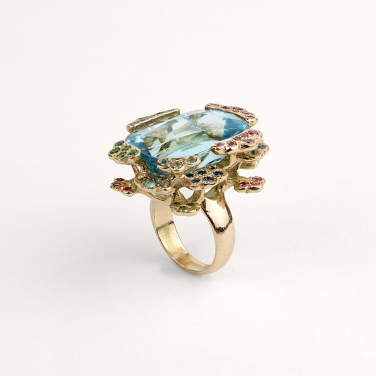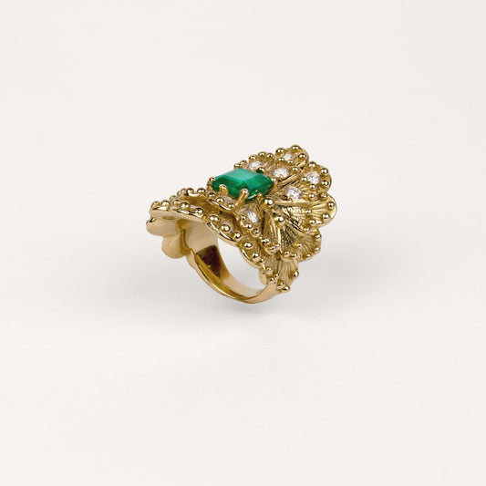 Les petites boules irrégulières d’or – jaune ou blanc - enlacent amoureusement la pierre de centre, protectrices, autant que réceptrices du gemme.