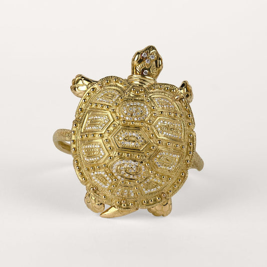 Bague Prodigieux bestiaire ours gaspard anneau poétique, diamants et or jaune recyclé 18k 750/1000