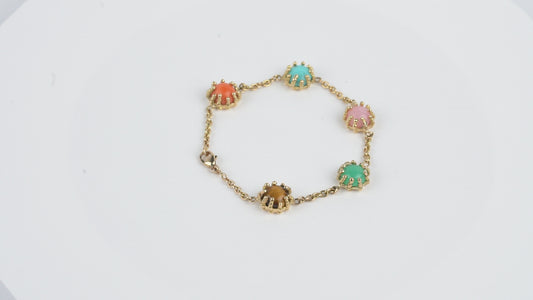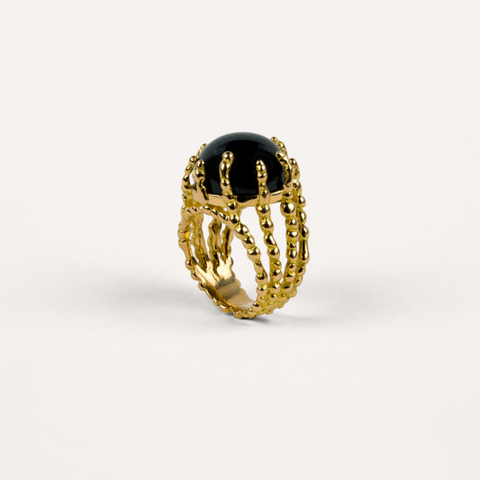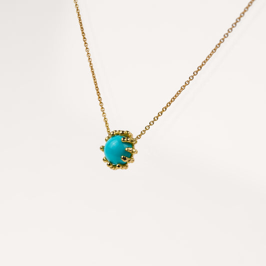 Comme des gouttelettes d’or, elles magnifient la pierre fine en œil de tigre, malachite, turquoise, corail, onyx, opale…