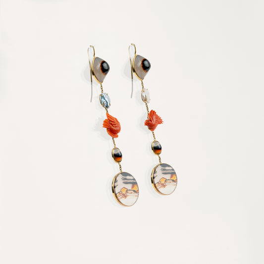 Expressions figuratives par excellence, la représentation des animaux par Garnazelle convoque les environnements aquatiques, aériens ou terrestres, de tailles mini ou plus imposantes, lents, quasiment invisibles ou rapides comme l’éclair. Avec le Prodigieux Bestiaire, chouette, grenouille, poisson, tortue, papillon, coccinelle, serpent s’offrent au poignet, aux doigts, au tour de cou ou aux lobes d’oreille dans des formes toujours bienveillantes. Parfaitement dessinés, ils se veulent au plus près de l’esprit propre à chacun de ses êtres - à la fois si divers et muent par un principe de vie inaltérable car désormais forgés dans le métal précieux – or jaune ou or blanc - et ornés ou sculptés à même les pierres fines ou précieuses. Dans le bracelet multi-animaux, une symphonie de figures animalières viennent orner le poignet comme une famille intime au plus près de la peau.