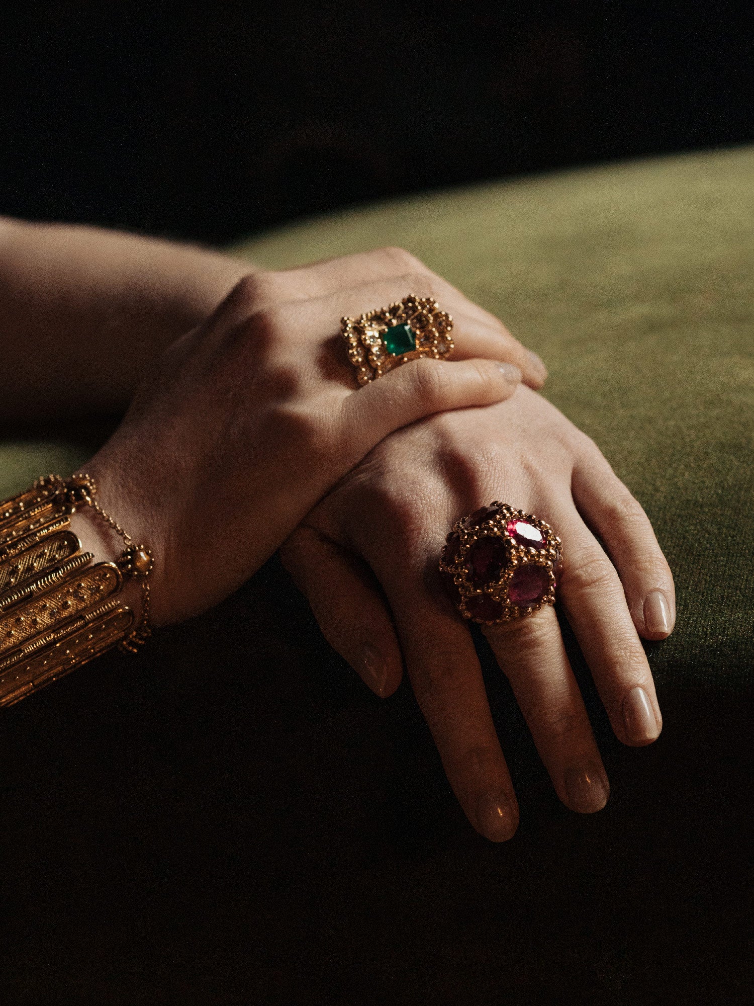 Véritable caverne d'Ali baba, il déploie un monde enchanteur, confrontant des formes, des thèmes, des inspirations. Expressions protéiformes de l’esprit Garnazelle, ce sont souvent des pièces uniques dotées des pierres les plus remarquables.