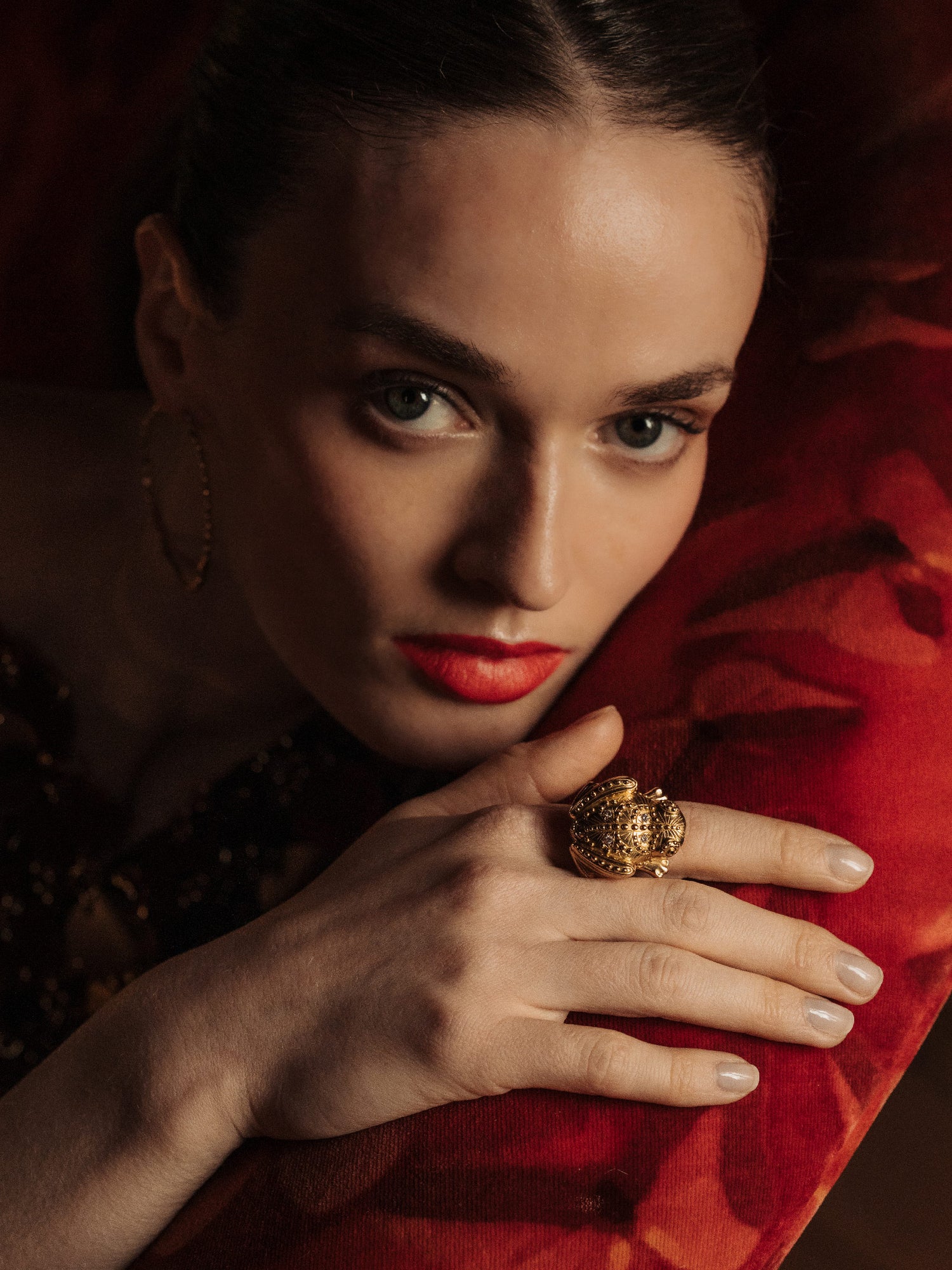 Expressions figuratives par excellence, la représentation des animaux par Garnazelle convoque les environnements aquatiques, aériens ou terrestres, de tailles mini ou plus imposantes, lents, quasiment invisibles ou rapides comme l’éclair. Avec le Prodigieux Bestiaire, chouette, grenouille, poisson, tortue, papillon, coccinelle, serpent s’offrent au poignet, aux doigts, au tour de cou ou aux lobes d’oreille dans des formes toujours bienveillantes. Parfaitement dessinés, ils se veulent au plus près de l’esprit propre à chacun de ses êtres - à la fois si divers et muent par un principe de vie inaltérable car désormais forgés dans le métal précieux – or jaune ou or blanc - et ornés ou sculptés à même les pierres fines ou précieuses. Dans le bracelet multi-animaux, une symphonie de figures animalières viennent orner le poignet comme une famille intime au plus près de la peau.
