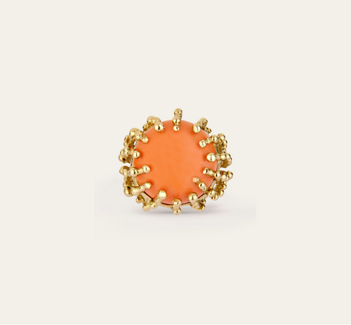 Bague mini Boules d'amour corail et or jaune 18k 750/1000