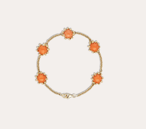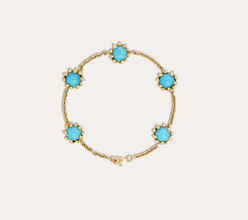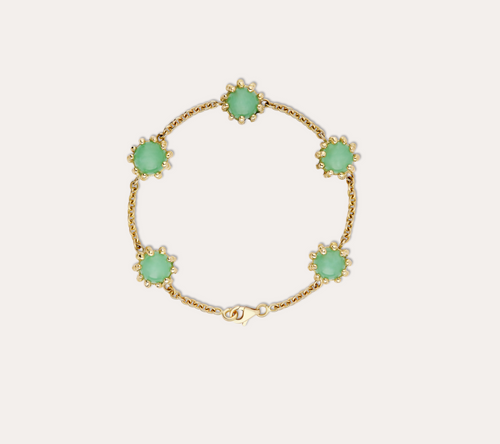 Boules d’Amour, sphère parfaite, dévoile l'essence de l'harmonie dans sa symétrie infinie. En version multiple, autour du poignet, les petites boules irrégulières d’or enlacent amoureusement les pierres de centre. Protectrices, elles magnifient la pierre fine par une secrète connivence empreinte de mystère.